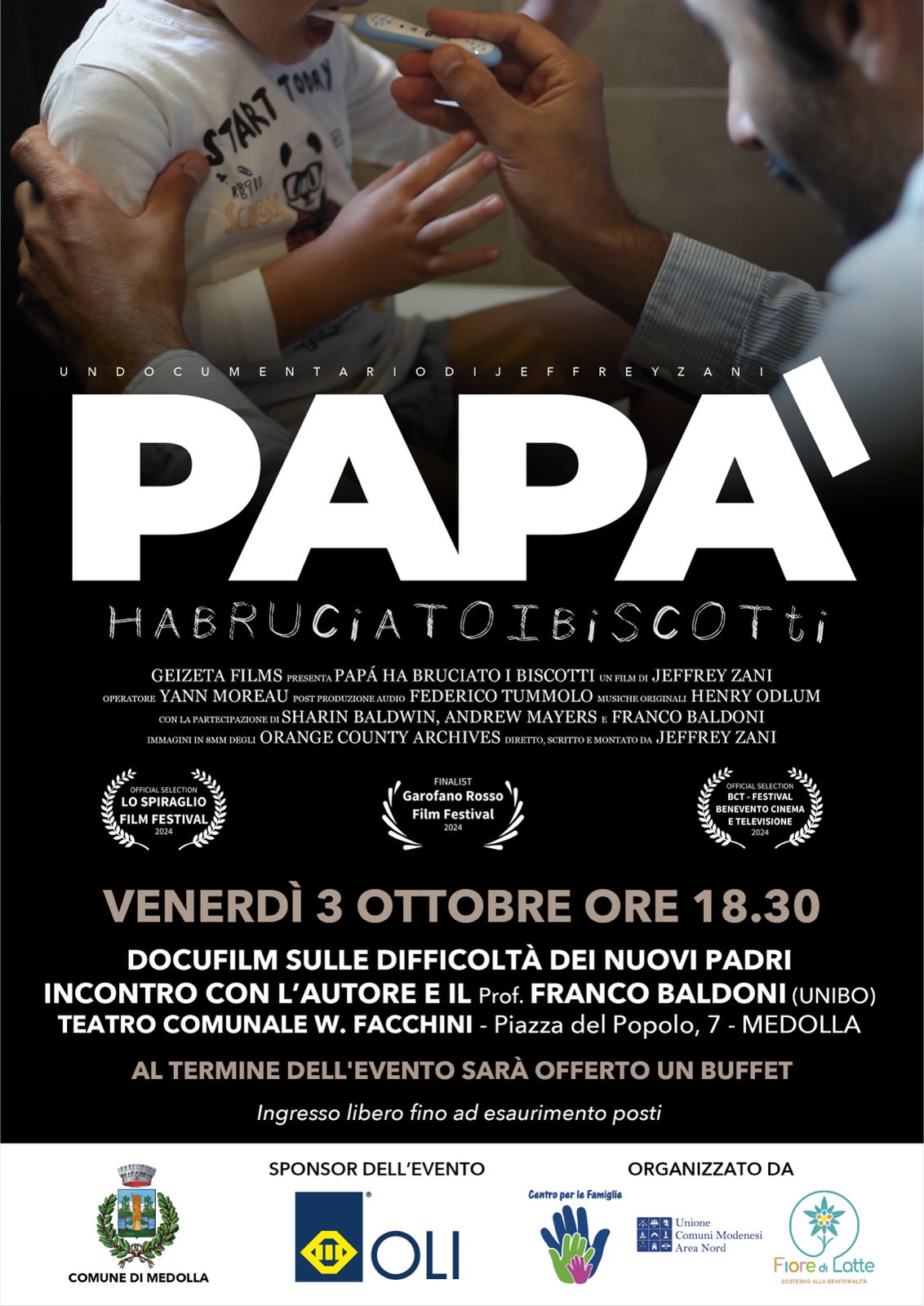 L’appuntamento si aprirà con la proiezione del documentario “Papà ha bruciato i biscotti”, una pellicola che raccoglie le voci e le storie di una serie di padri alle prese con soddisfazioni ma anche sfide, grazie a una prospettiva che mescola onestà e sensibilità per restituire un ritratto autentico della genitorialità di oggi.