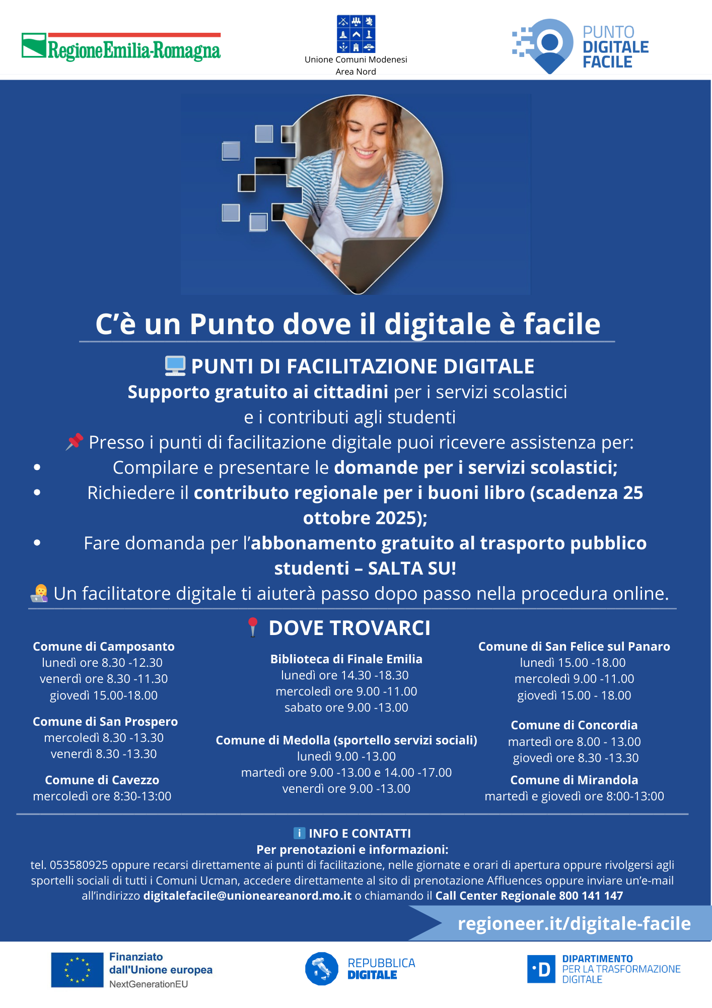 Un servizio gratuito per i cittadini che necessita di supporto digitale e assistenza per SPID, Posta elettronica e utilizzo di dispositivi informatici. Si riceve su appuntamento.